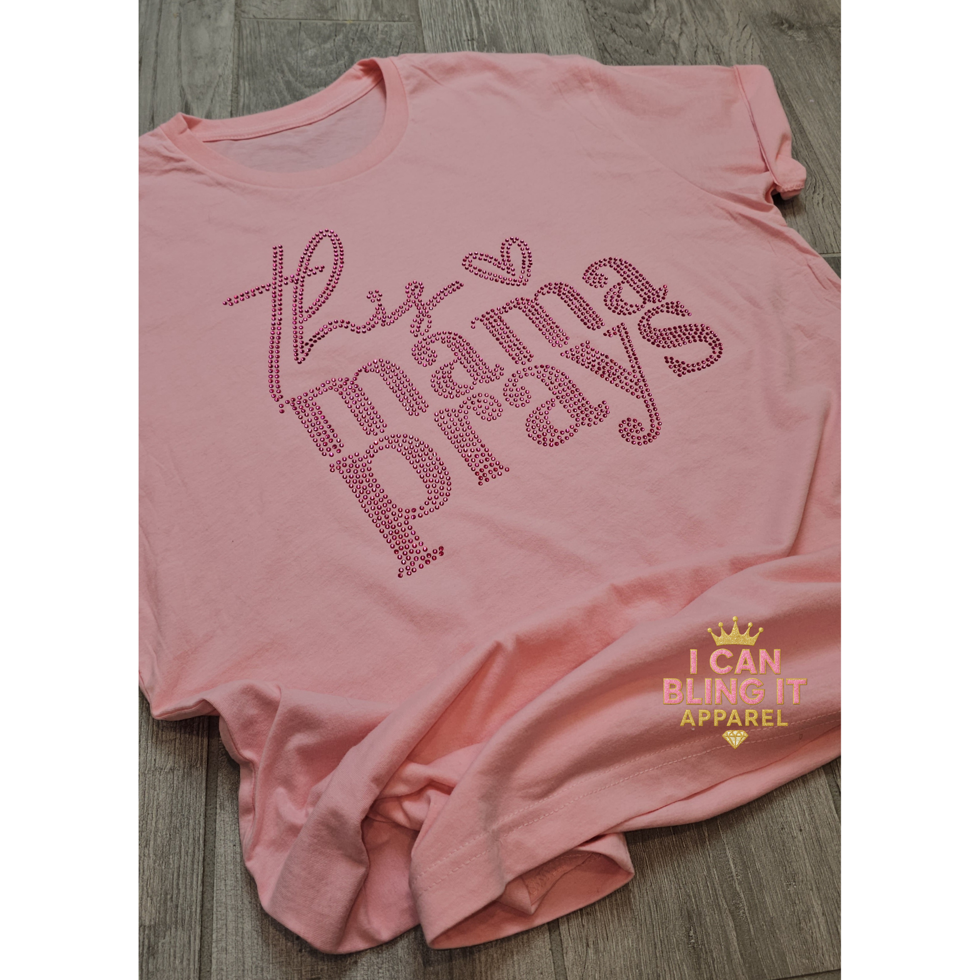 . Our pink rhinestone tee is more than fashion — it’s faith in action. For the mamas who pray, slay, and shine with purpose!