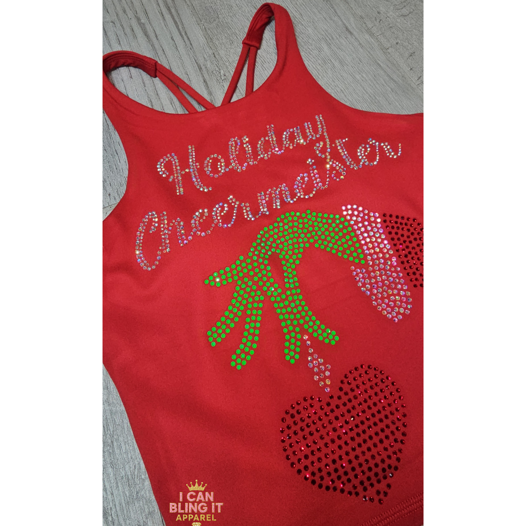 This rhinestone tank is perfect for practice or spreading sparkle around town — festive, sassy, and full of cheermas spirit! ✨💪